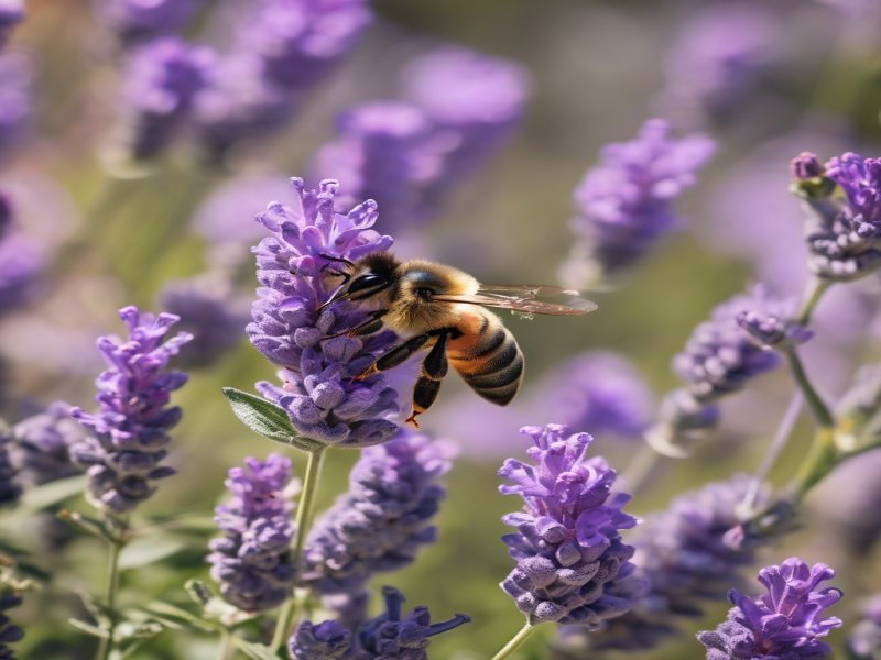 Ultra Realistic Photo Of A Close Up Bee On Lavender In Bloom