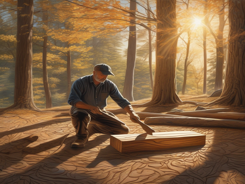 Ultra Realistic Photo Of A Man Carving Wood With Sunlight Behind Him