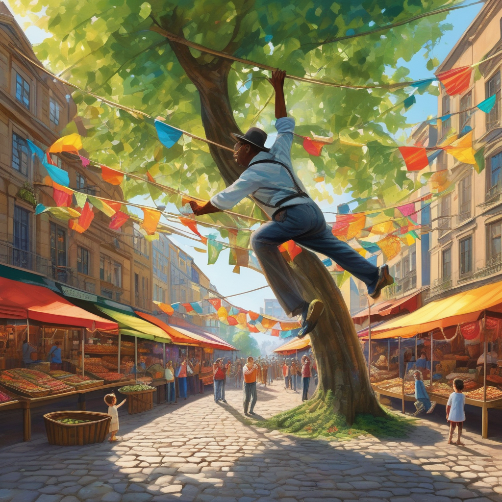 Ultra Realistic Photo Of A Street Performer Balancing On A Rope