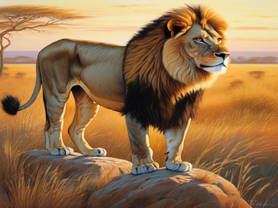 A Majestic Lion In The African Savanna At Golden Hour Cinematic