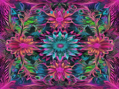 Vibrant Fractal Design In Neon Colors Symmetry And Repetition