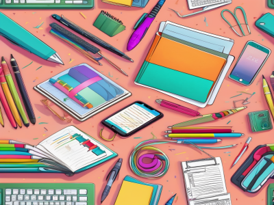 A Clean Flatlay Of Office Supplies Including Pens Notebook And Phone T